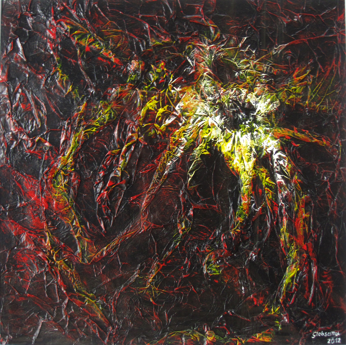 38x38, Acryl / modeliertes Seidenpapier,